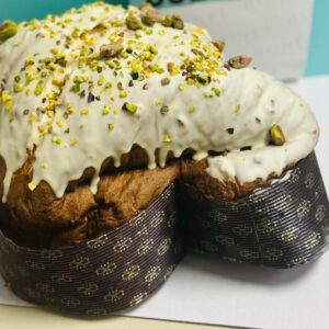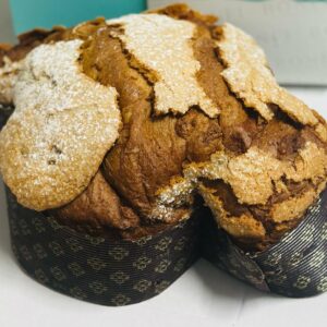 Farina,cioccolato dulcey burro, tuorlo, Mandarino Candito, Acqua, Zucchero semolato, Pasta di arancia candita, Miele, Vaniglia del Madagascar, Fibre naturali, Sale.